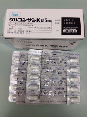 | 規格 | : カリウム5mEq1錠 / 包装 10.000錠×10.000シート PTP |