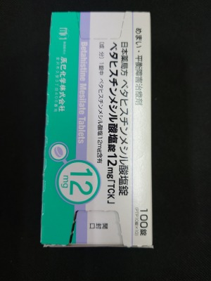 ベタヒスチンメシル酸塩錠12mg「TCK」YJ:1339005F2160 販売元: 辰巳化学 製造(輸入)元: 辰巳化学 包装単位: 10.000錠